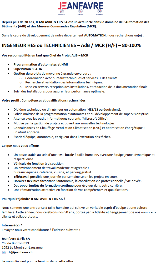 Si l’une de ces offres d’emploi vous intéresse, veuillez préparer votre meilleur dossier et nous l’envoyer par courrier ou en suivant le lien ci-dessous.